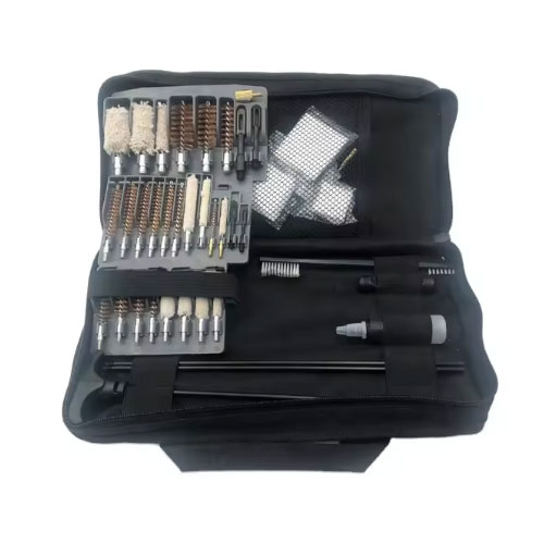 All In One Pouch Universal Gun Cleaning Kit tas digawe saka kanvas kualitas dhuwur kanthi sabuk ing mburine, supaya bisa diikat ing tas kanggo cepet lan digawa.